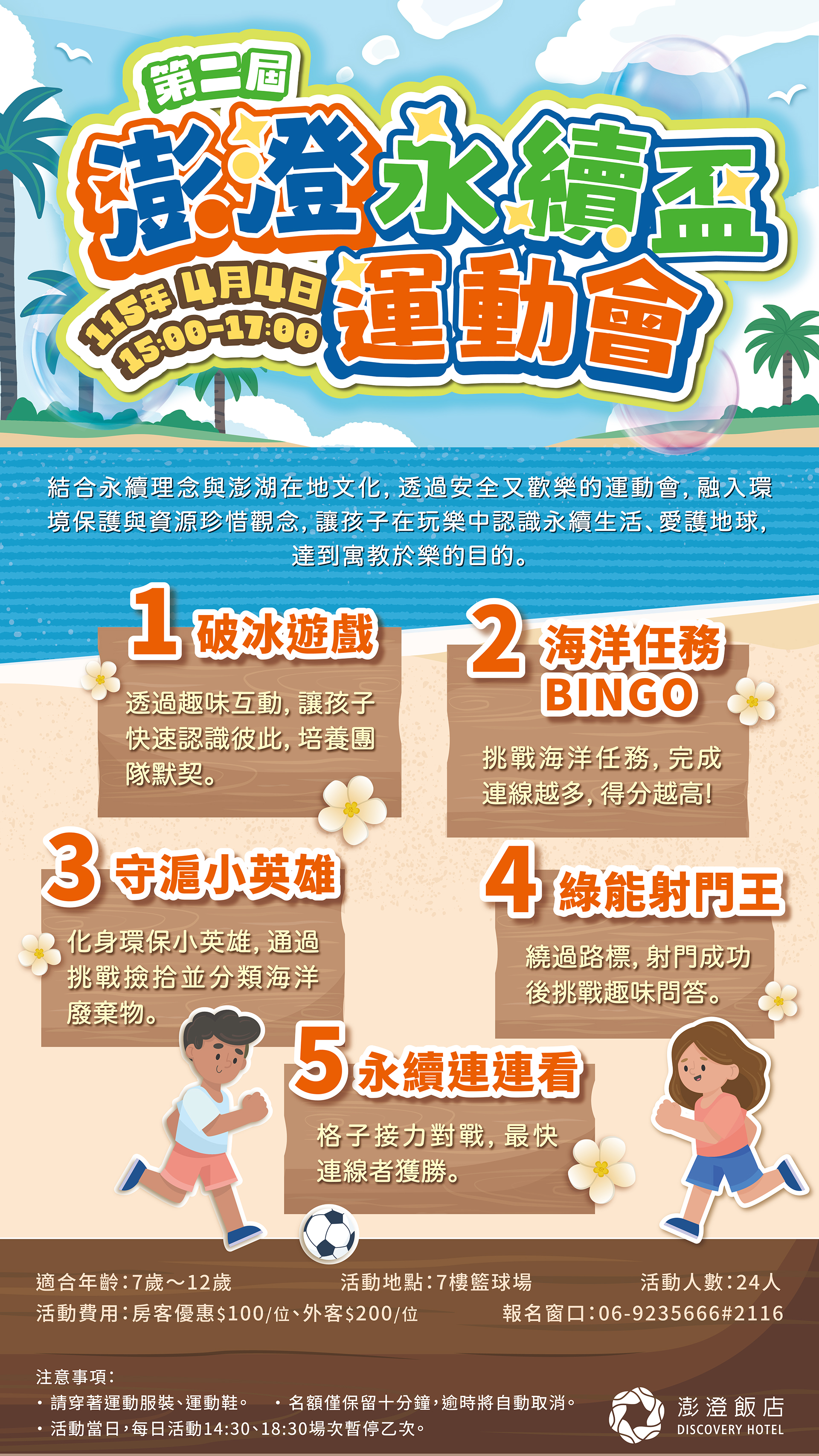 HOTEL NEWS Find The Message 線上客服 MESSENGER 澎澄飯店 Discovery Hotel SCROLL DOWN 4/4 兒童節限定 第二屆澎澄永續盃運動會 2026.4.4 結合永續理念與澎湖在地文化,在玩樂中認識永續生活、愛護地球! share Back to List Previous Previous 2026年度澎澄飯店行事曆 PARK GREEN SQUARE 2026年度澎澄飯店行事曆 2026.01.01 NEXT NEXT 澎澄飯店八週年 | 刮出好運8 PARK GREEN SQUARE 澎澄飯店八週年 | 刮出好運8 2026.02.01 Fantasy journey 一起熱血澎湃,探索一場驚奇的奇幻旅澄