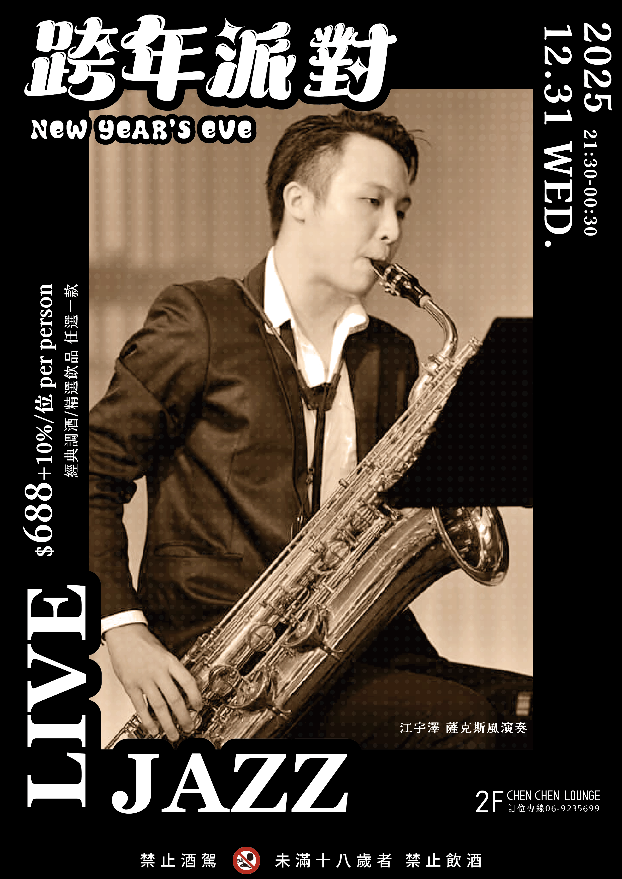 Chen Chen Lounge邀請到台灣薩克斯風演奏者江宇澤來澎湖一起跨年囉!
